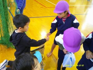 事前に「お相撲さんが来てくれるよ!」とこども達に話している時に、「はっけよいする!」「のこったのこった!」と『おすもうさん』から浮かんだ言動を見せてくれる子もいて楽しみにしていました。