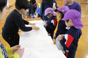 なぜイワシや恵方巻を食べるのか、恵方巻を食べる時にどうしたら良いのかなどをみんなで確認しながら食を通して『節分』に触れることができました。そして、心の中の鬼を払うために「鬼は外、福は内」も新聞紙ボールを使って行い、色んな形の『鬼は外』も経験したこどもたちでした。
