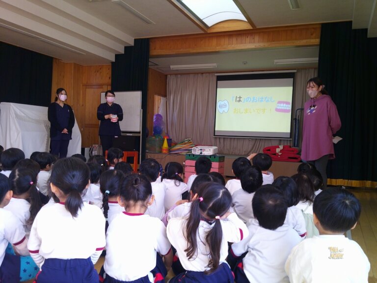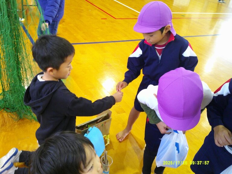 最後に『りんごを水の中に入れたらどうなるでしょう?』と尋ねてみると、1人の子が「冷たくなる!」とすぐに答えてくれたので驚きと同時に、確かに!と感心しました。